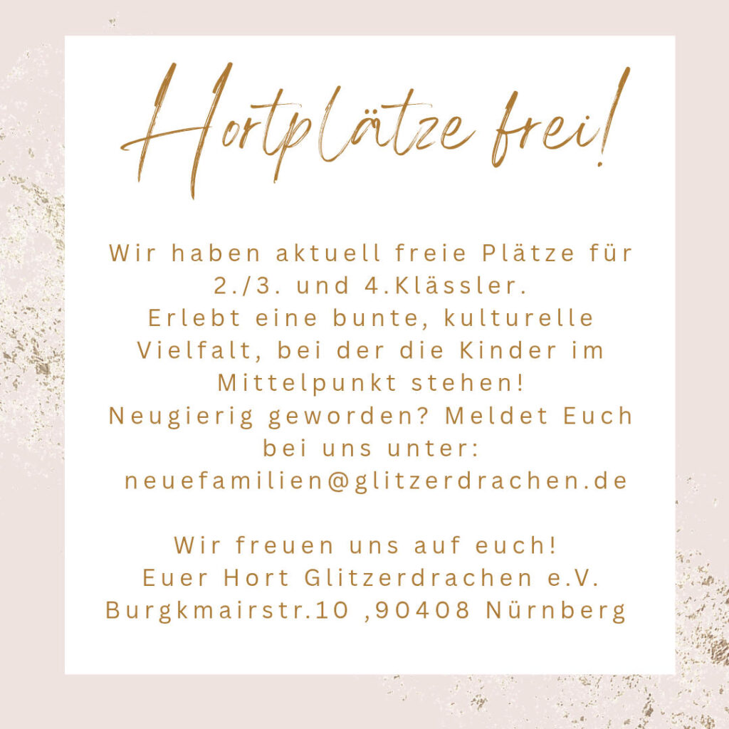 Wir glitzern weiter und suchen für unsere Einrichtung ab September 2023 eine pädagogische Fachkraft und eine*n Kinderpfleger*in. Dann eröffnen wir unseren Hort in der Burgkmairstraße. Die Kinderladengruppe wird erweitert von 16 auf 25 Kinder und die Hortgruppe bietet im neuen Haus bis zu 29 Kindern eine liebevolle Betreuung. Wir freuen uns schon sehr auf den…